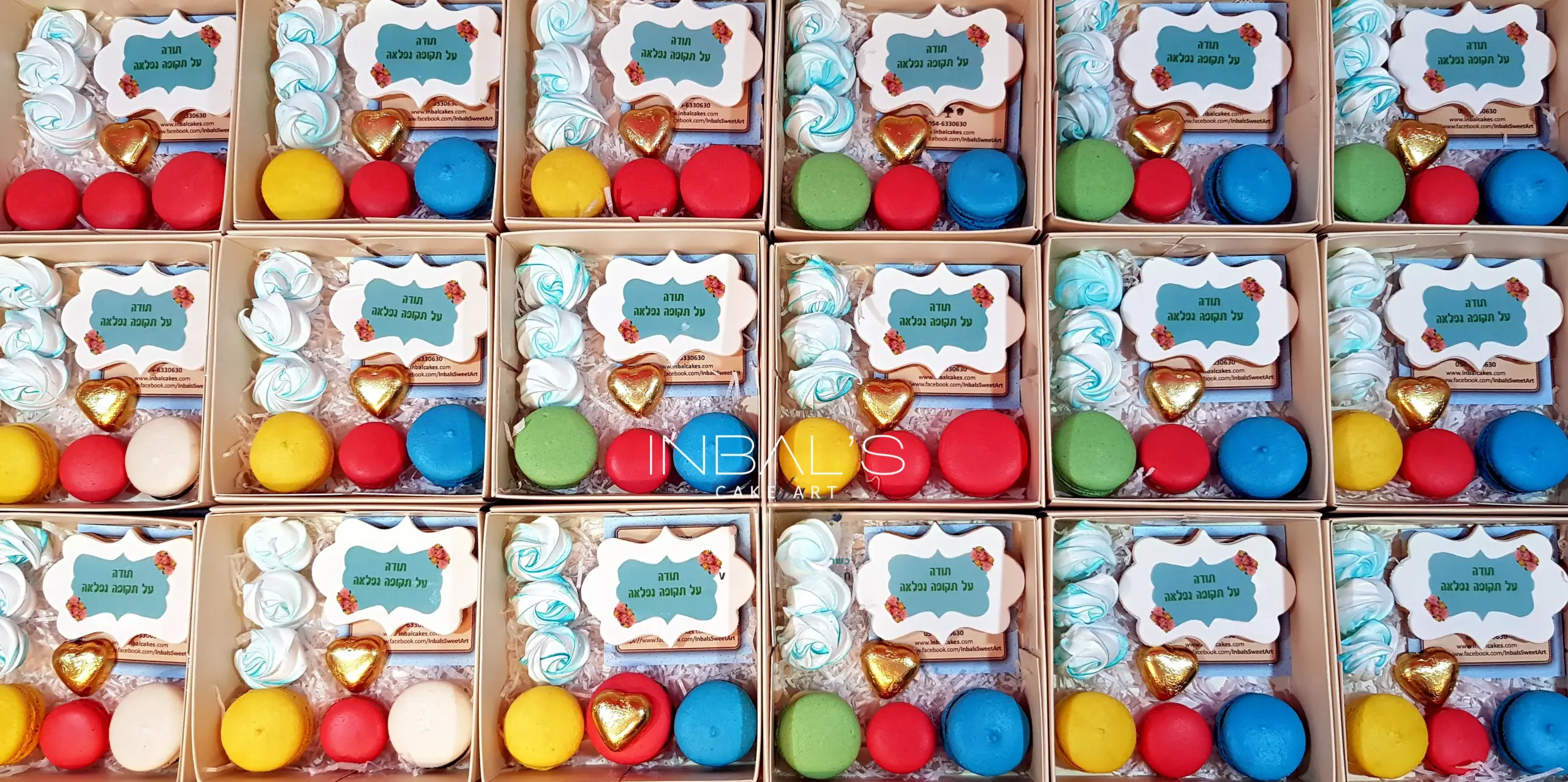Inbal’s Cake Art מתמחה ביצירת מארזים ממותגים המשקפים את ערכי הארגון שלכם. עוגייה ממותגת היא מתנה זכירה ומכבדת שמתאימה ל: